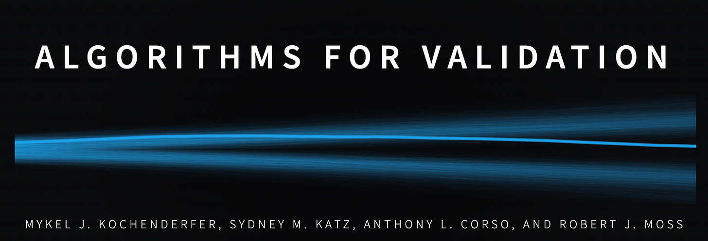 Book of the week - Algorithms for Validation by Mykel J. Kochenderfer, Sydney M. Katz, Anthony L. Corso, and Robert J. Moss