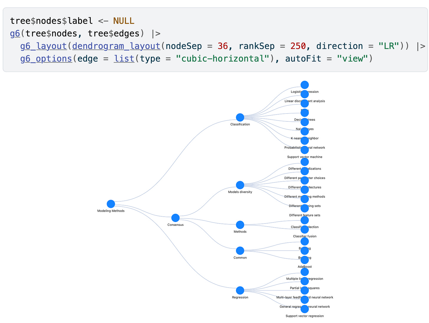 This week’s focus is on the g6R project. The g6R is an R wrapper for the G6 graph JS library. Developed by David Granjon and David Schoch, it provides a set of tools and functions for creating interactive networks in R.